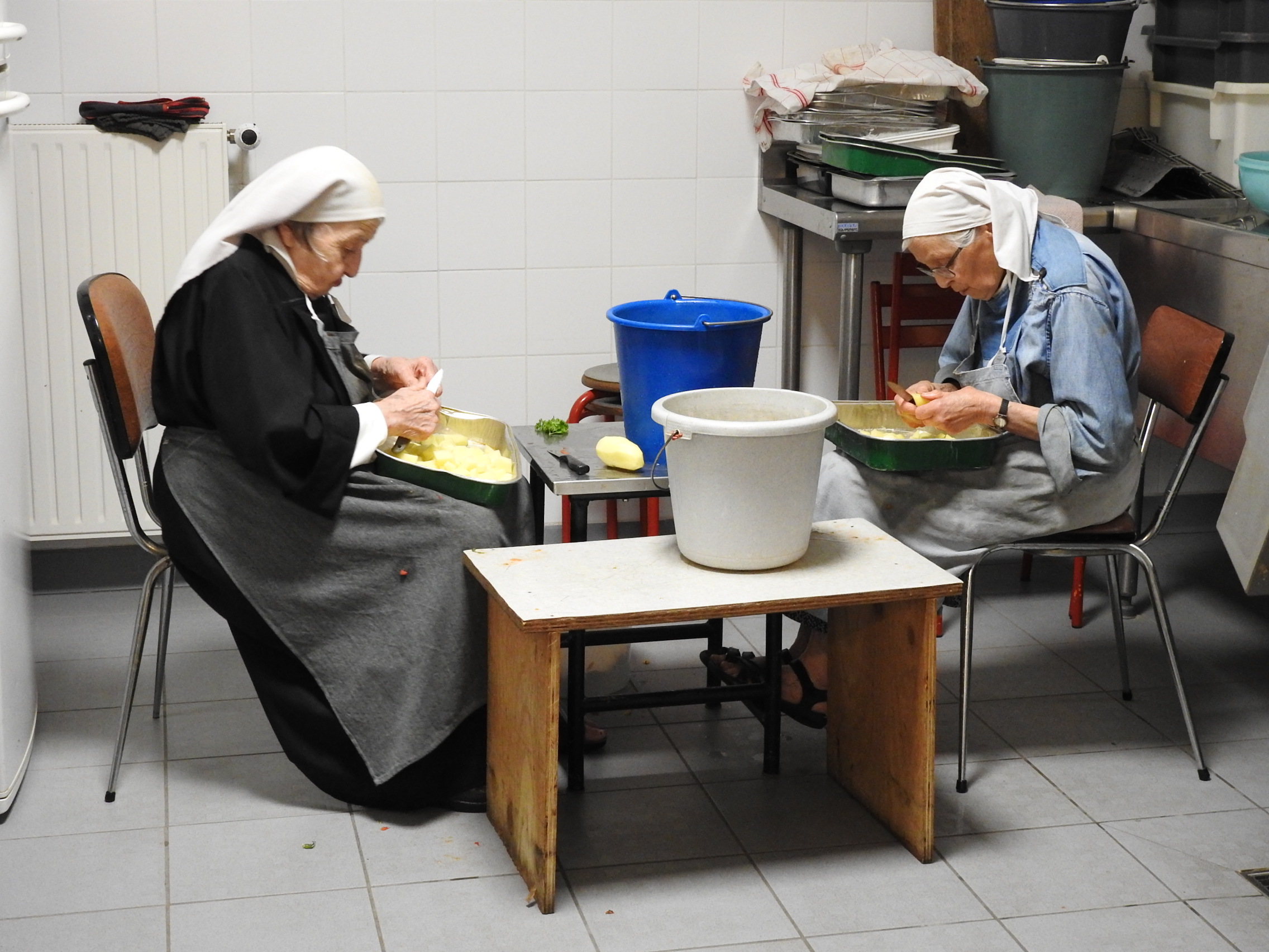 Cependant la réalité du travail est plus vaste que les seules activités économiques. Un bon nombre de sœurs assurent les services quotidiens de la maison : cuisine,  lavoir, couture, infirmerie, jardinage, ménage, réparations et entretien des bâtiments, bibliothèque, tâches administratives, accueil des hôtes et de nos familles
